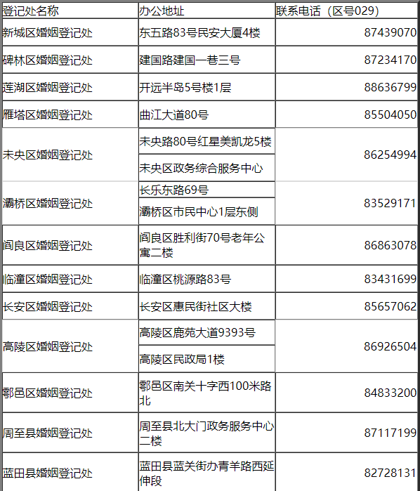 二、西安各区县婚姻登记地址