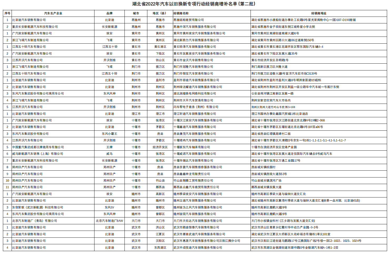 附件:《湖北省2022年汽车以旧换新专项行动经销商增补名单(第二批)》