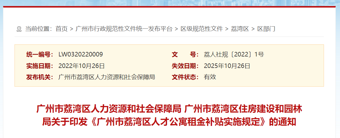 第二条本规定的补贴对象为符合《广州市荔湾区人才公寓管理办法》(荔住建规〔2021〕1号)所规定的条件,经审核后租住荔湾区人才公寓满1年的承租人。租住人才公寓不满1年的承租人,不享受租金补贴的优惠政策。