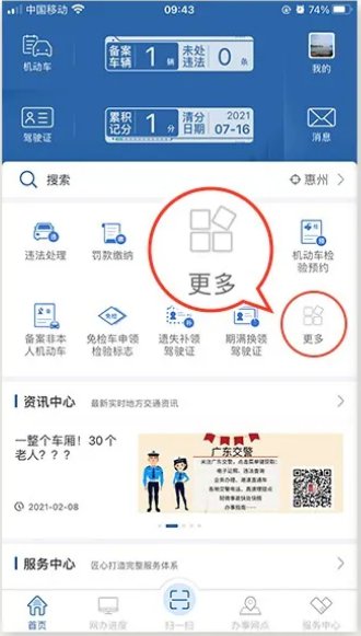 1、下载“交管12123”APP,下载后打开APP,点击【更多】,屏幕下拉选择【学法减分】,进入学法减分申请界面。