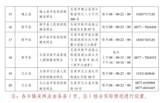 玉溪免费核酸检测时间表 玉溪免费核酸检测时间表最新