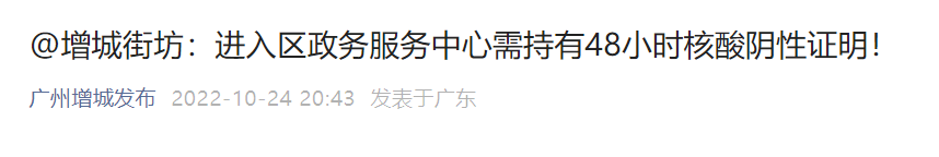 10月25日进入增城政务服务中心需持48小时核酸证明