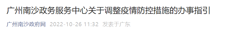 亲爱的市民朋友:根据《广州市南沙区新型冠状病毒肺炎疫情防控指挥部关于加强社会面疫情防控措施的通告》,为更好保障广大市民健康安全,自2022年10月26日起,广州南沙政务服务中心(以下简称区政务服务中心)疫情防控措施调整如下: