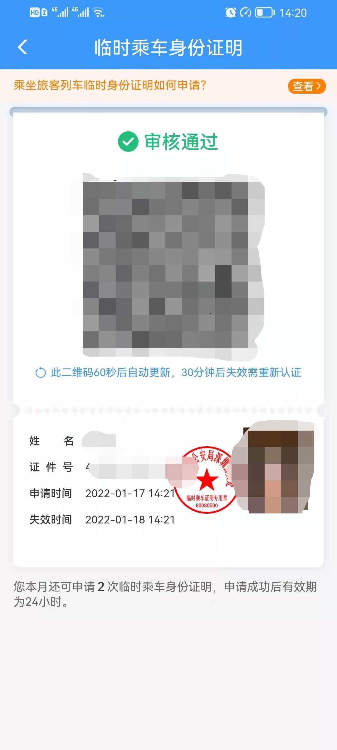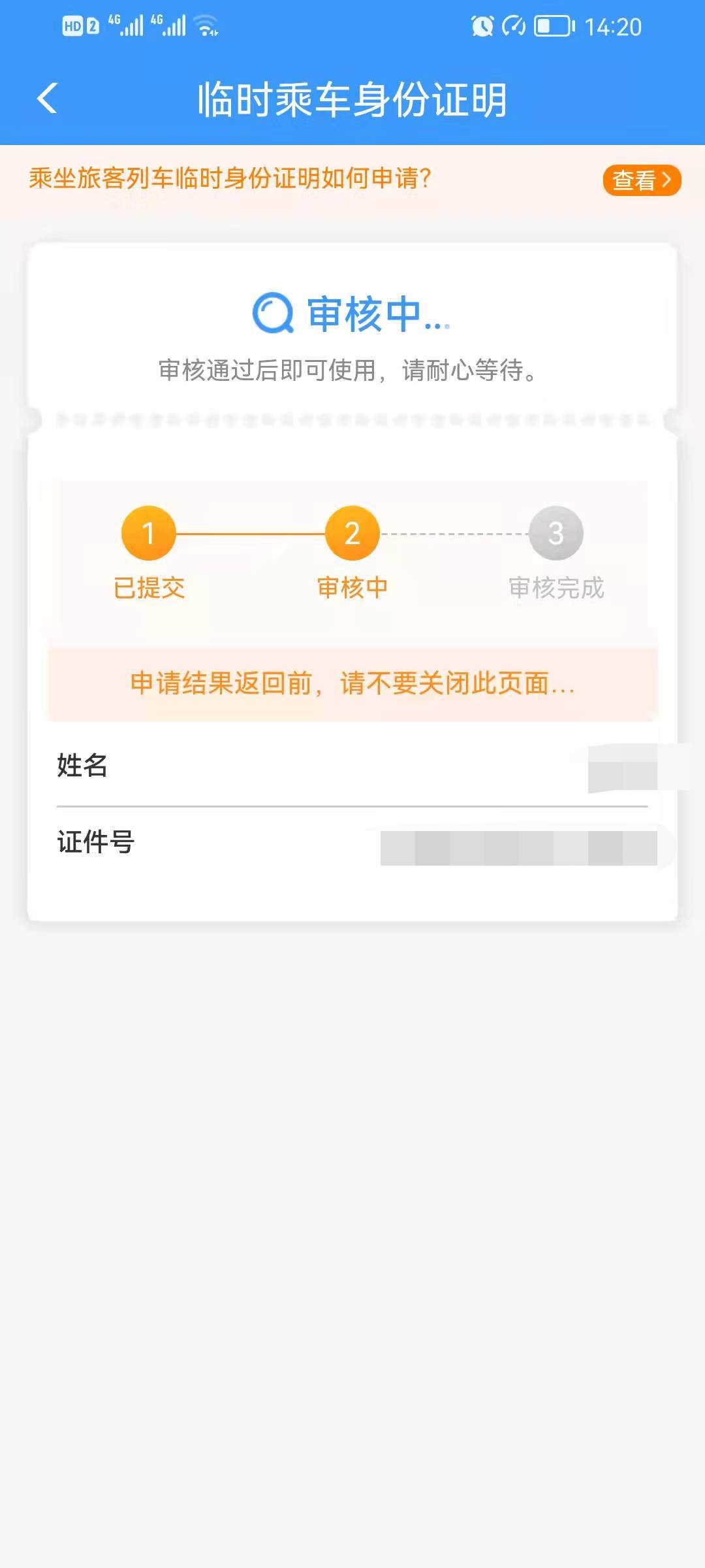 第五步:等待审核通过即可获取临时身份证明。