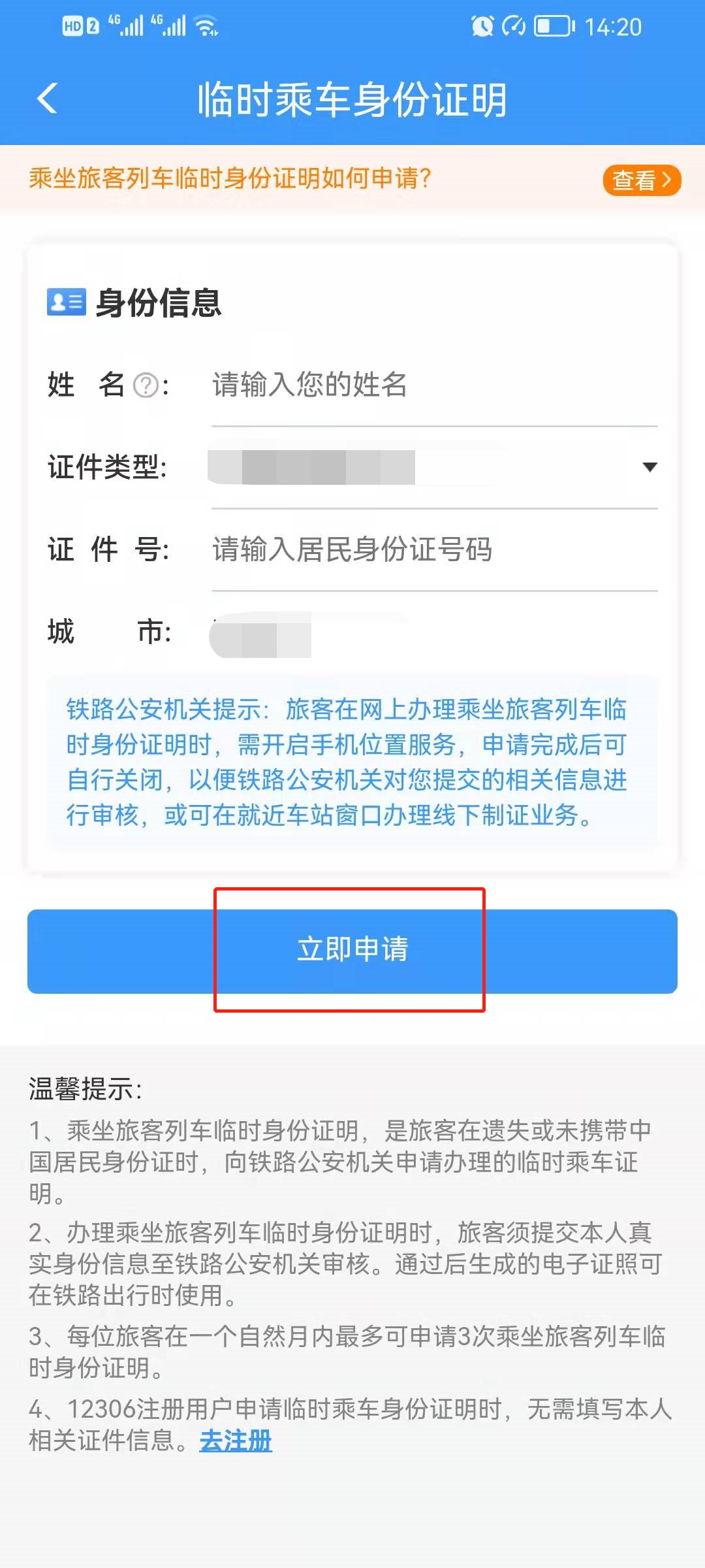 电子临时乘车身份证明申请流程指引