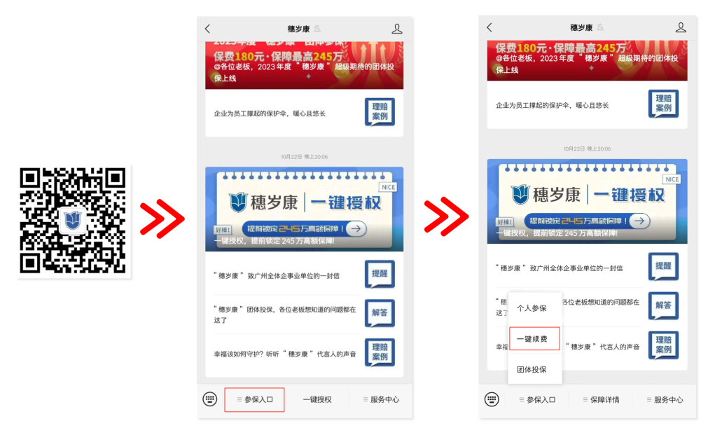 如收到如下短信提醒,或在“穗岁康”订单查询界面未查询到2023年保单信息,则扣费失败,可能导致扣费失败原因为余额不足等,请在11月1日通过“穗岁康”公众号—参保入口—一键续费,进行投保缴费。