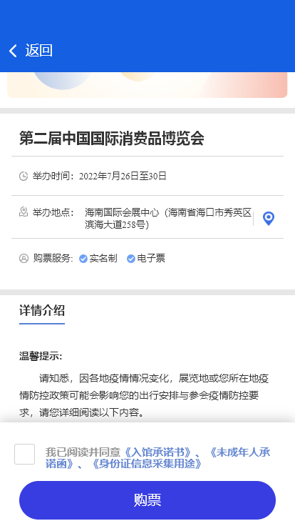 1.进入首页,点击“购票观展”,阅读有关信息后,进行购票。