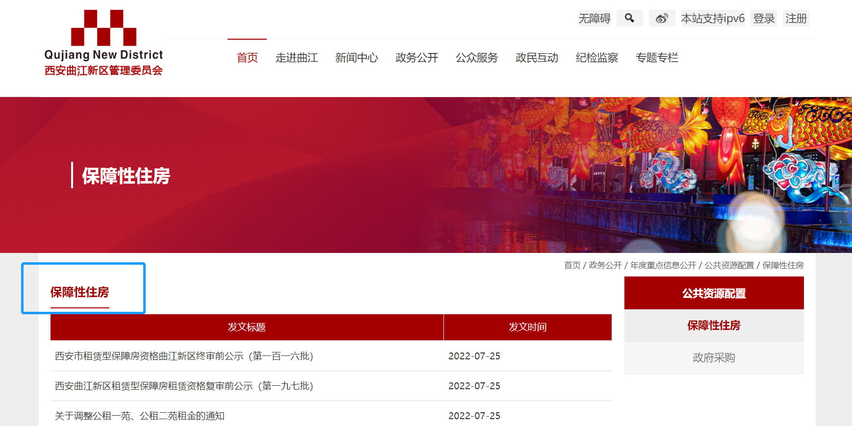市民可登录西安曲江新区官网的保障性住房平台查看西安曲江新区公租房申请细则,公示名单等内容。