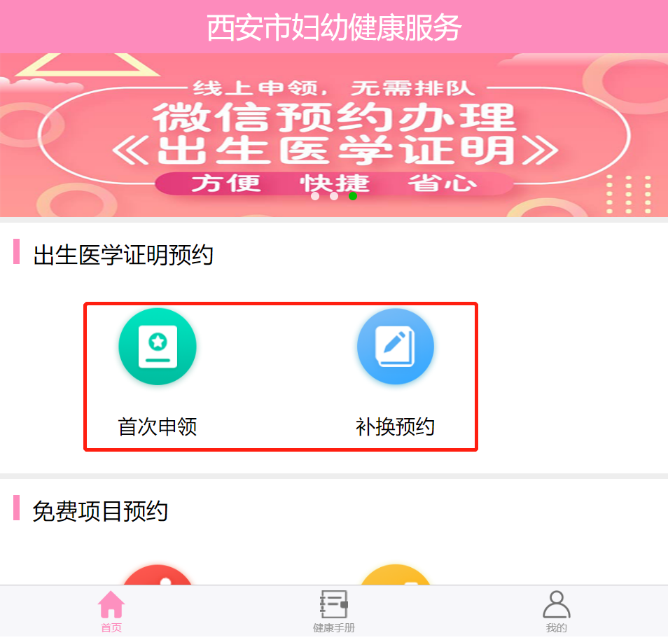 一、点击进入:西安市妇幼健康服务,新老用户完成注册登记。