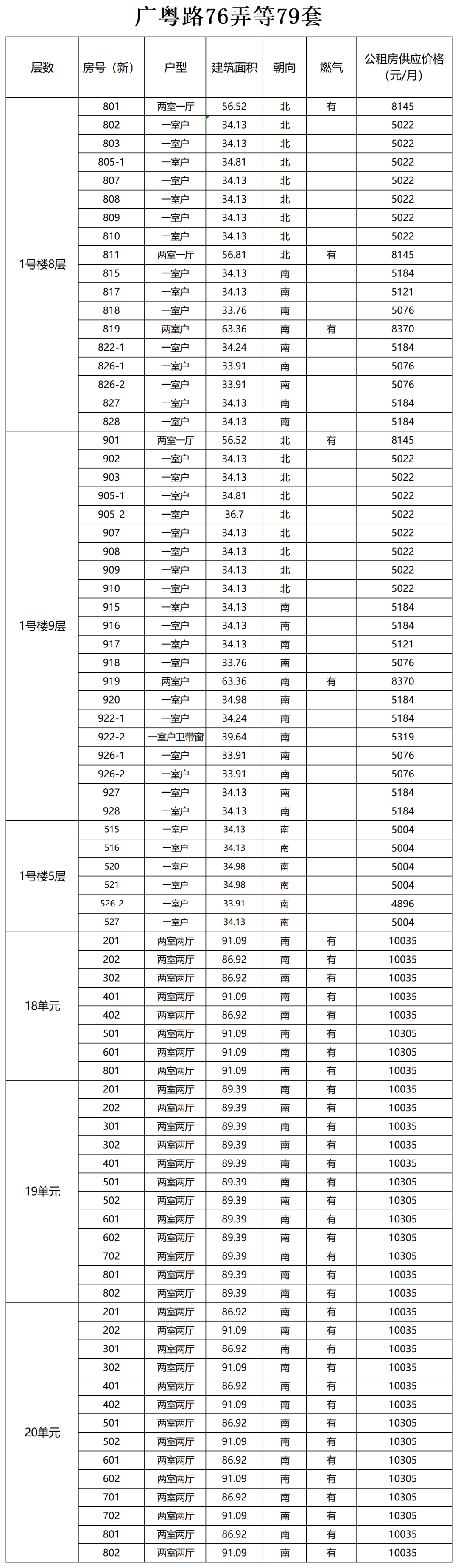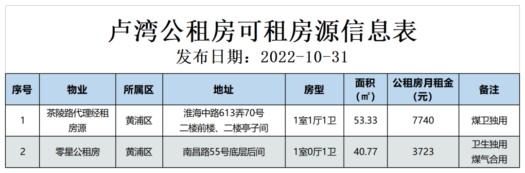 黄浦区卢湾公租房房源信息(10月31日更新)