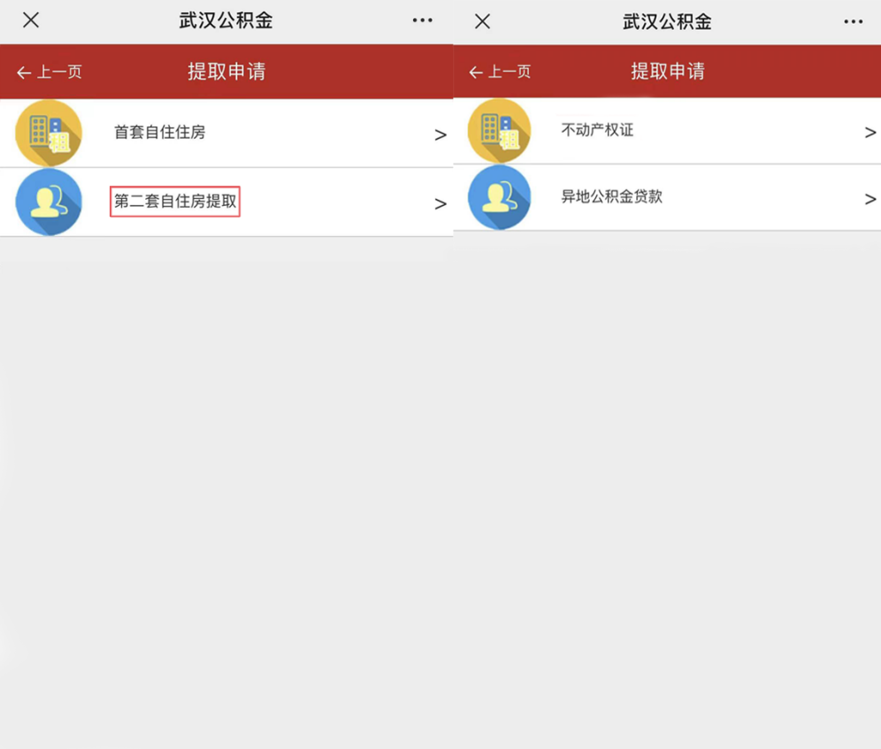 4、根据自身申请需求,选择“首套自住住房”或“第二套自住房提取”。
