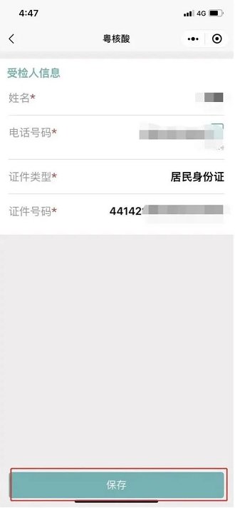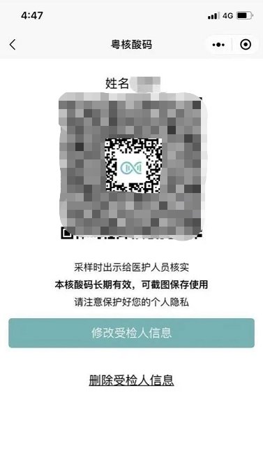 5.点击“保存”即可生成“粤核酸码”,受检人截图并保存。