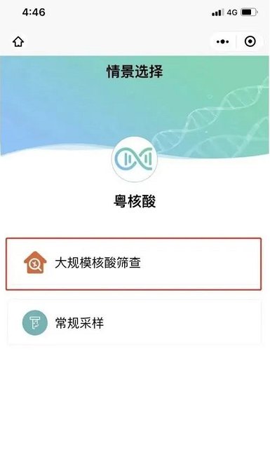 1.微信“扫一扫”粤核酸小程序的葵花码或微信搜索“粤核酸6”小程序。