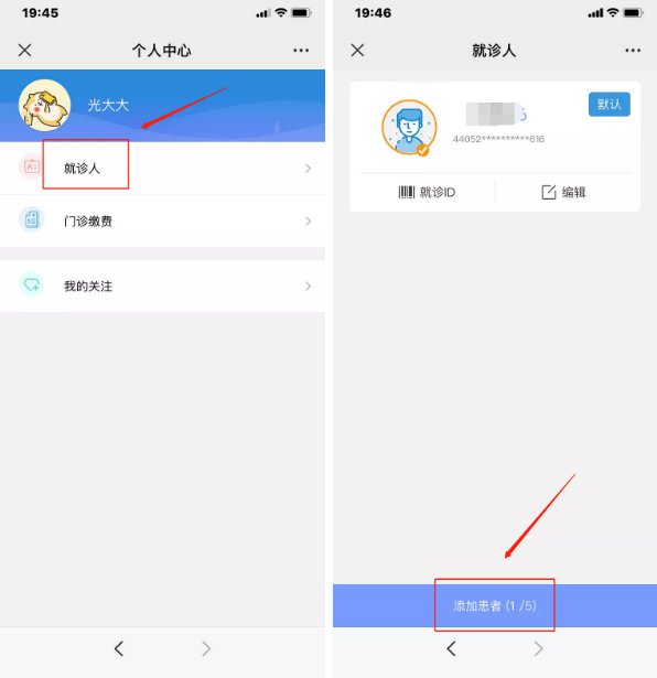 2、点击添加患者,录入个人信息和ID号(如有我院ID号的直接录入,若未办卡,请先录入其他个人信息,点保存系统自动生成ID号。如需要诊疗卡请去门诊收费处补办);儿童如果无身份证号,可录入监护人的信息(在父亲身份证号码前加“F”,或在母亲身份证号码前加“M”)。