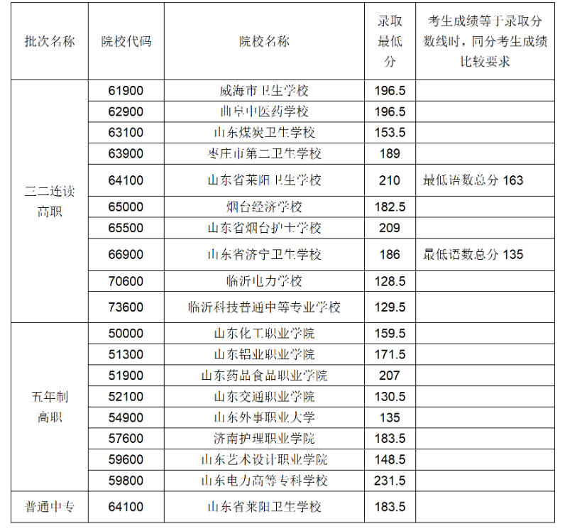 (一)五年制高师录取控制分数线:180分。