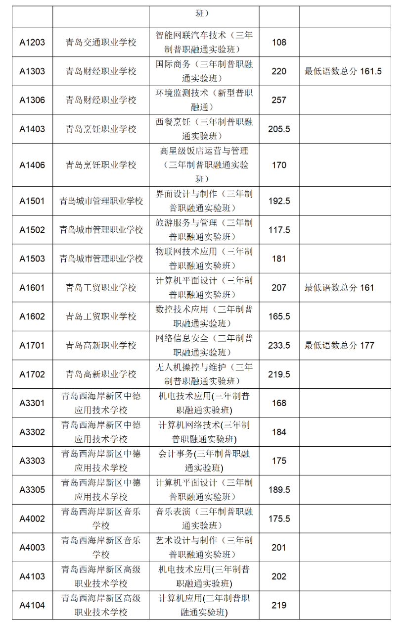 现将2022年青岛市职业类学校第一阶段招生录取分数线公告如下: