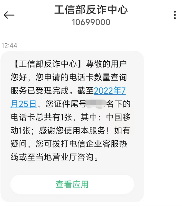 注:查询结果仅包括在网状态的移动电话卡数量,不包括固定电话,以及已销户的移动电话卡。