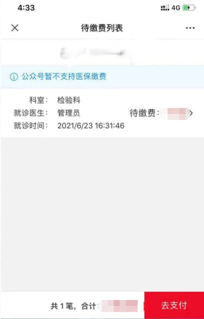第六步:进入支付页面进行缴费(注:如需退款请到我院门诊收费处办理。)