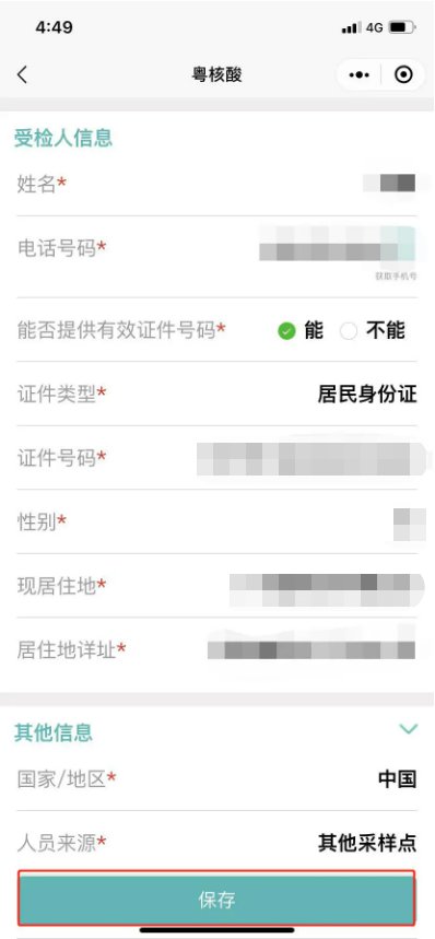 5.点击“保存”即可生成“粤核酸码”,受检人截图并保存。