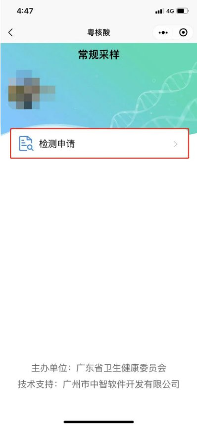 4.点击“检测申请”填写本人/他人的个人信息。如需关联小孩的话,在这一步骤开始可以填写小孩子的信息,这样就能生成孩子的二维码。【可帮家人(老人、小孩等成员)填写信息生成二维码后截图保存,数量不限(重复操作这一步即可)】