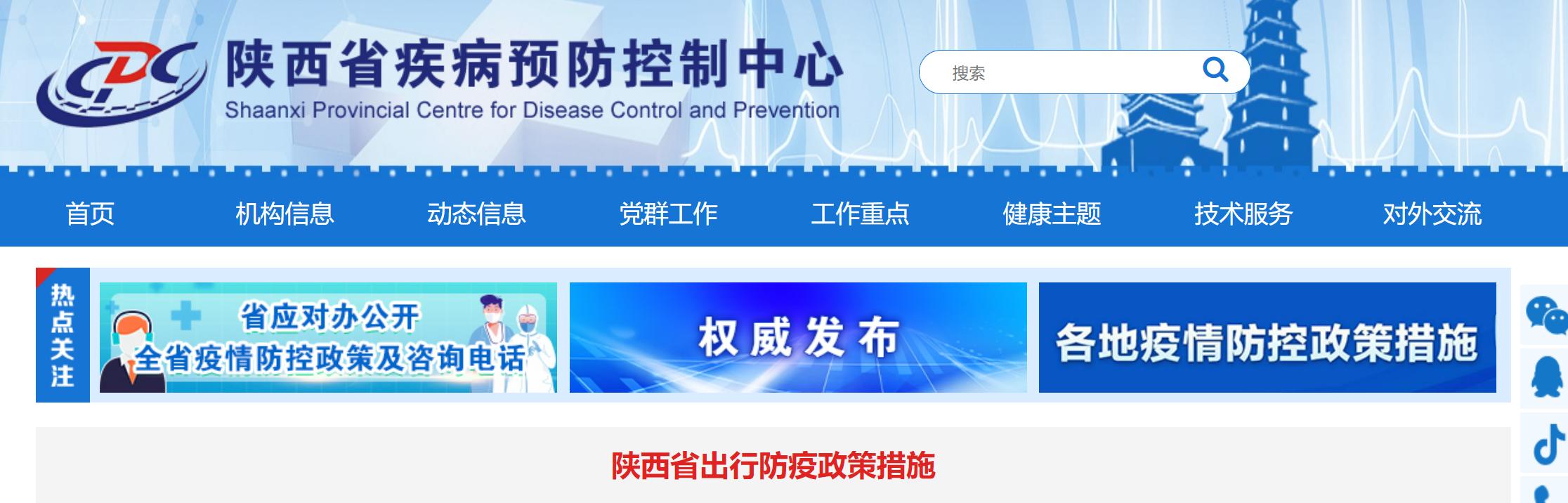 ① 进入“陕西省疾病预防控制中心”官网(如图),点击进入:“陕西省疾病预防控制中心”官网;