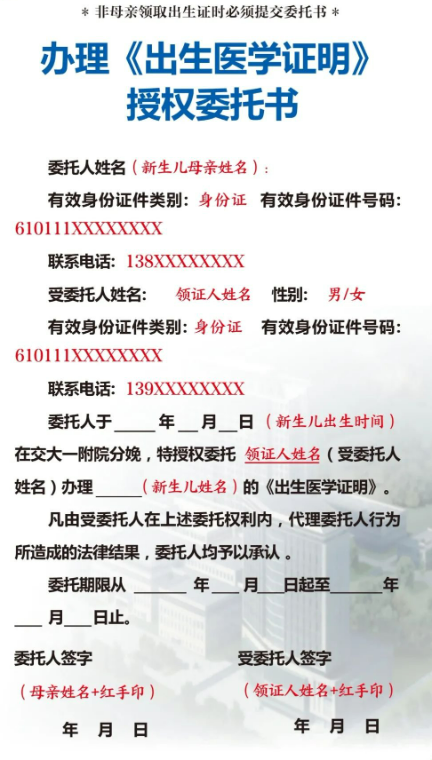 4、除母亲之外所有人办理出生证均需母亲授权委托书
