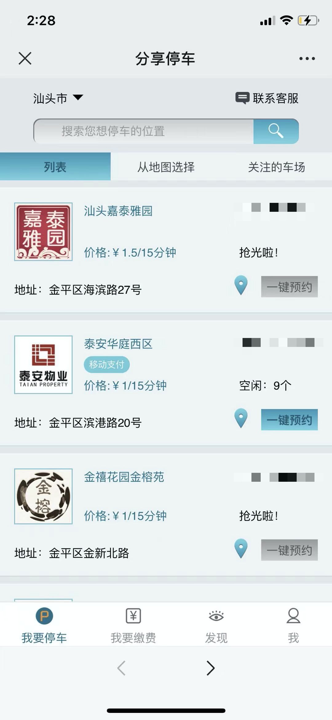 根据小编登陆“分享停车”平台上,金平区、龙湖区等也是有部分开放共享车位的小区的,大家可以自行登陆平台上查询一下是否有你附近的车位。