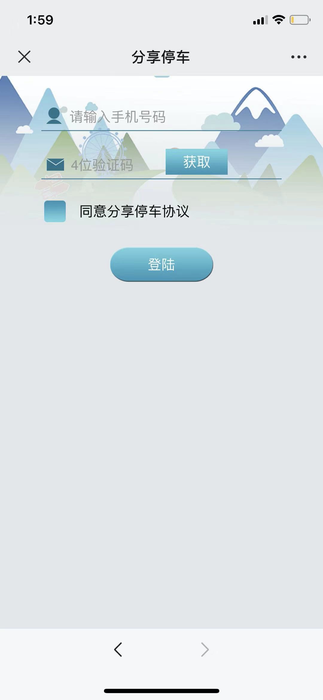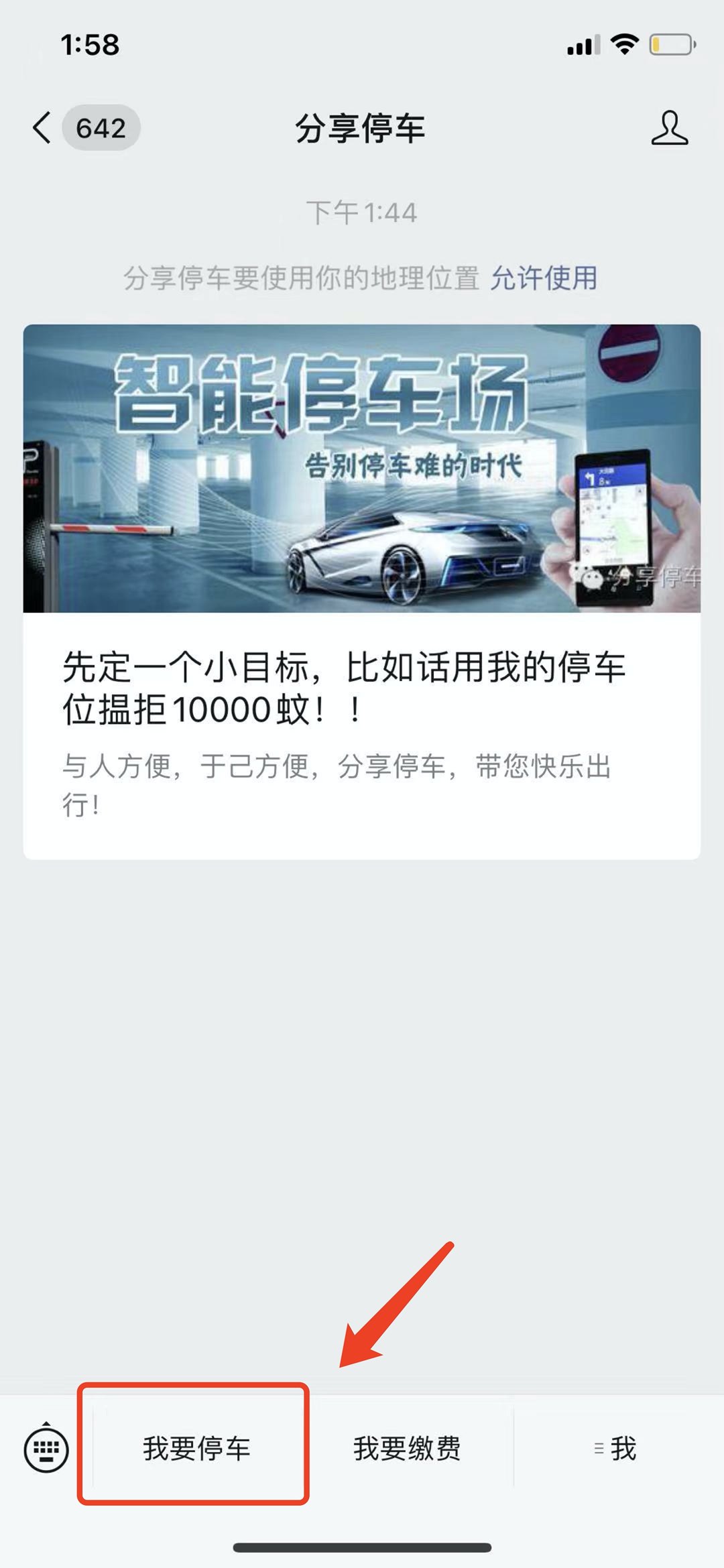 进入“分享停车”微信公众号底部菜单栏,点击【我要停车】,进行注册登录。