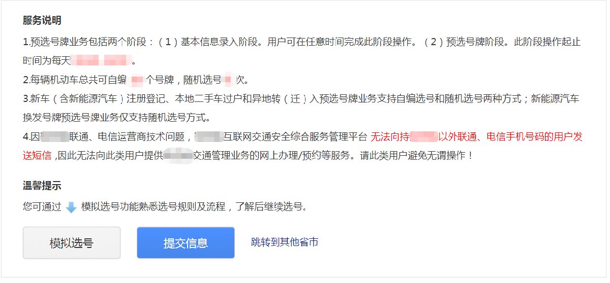 (2)预选号牌阶段。此阶段操作时间以本平台预选号牌服务说明页面中的服务说明为准。