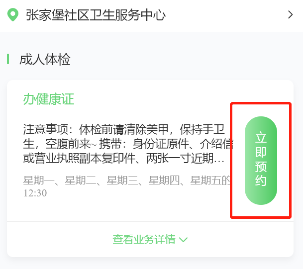 预约入口:进入未央区张家堡社区卫生服务中心微信公众号,点击立即预约。