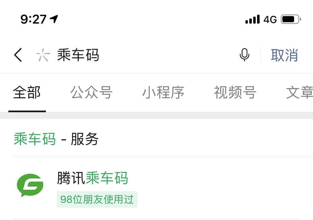第一步:打开微信在上方搜索框中输入“乘车码”,点击腾讯乘车码。
