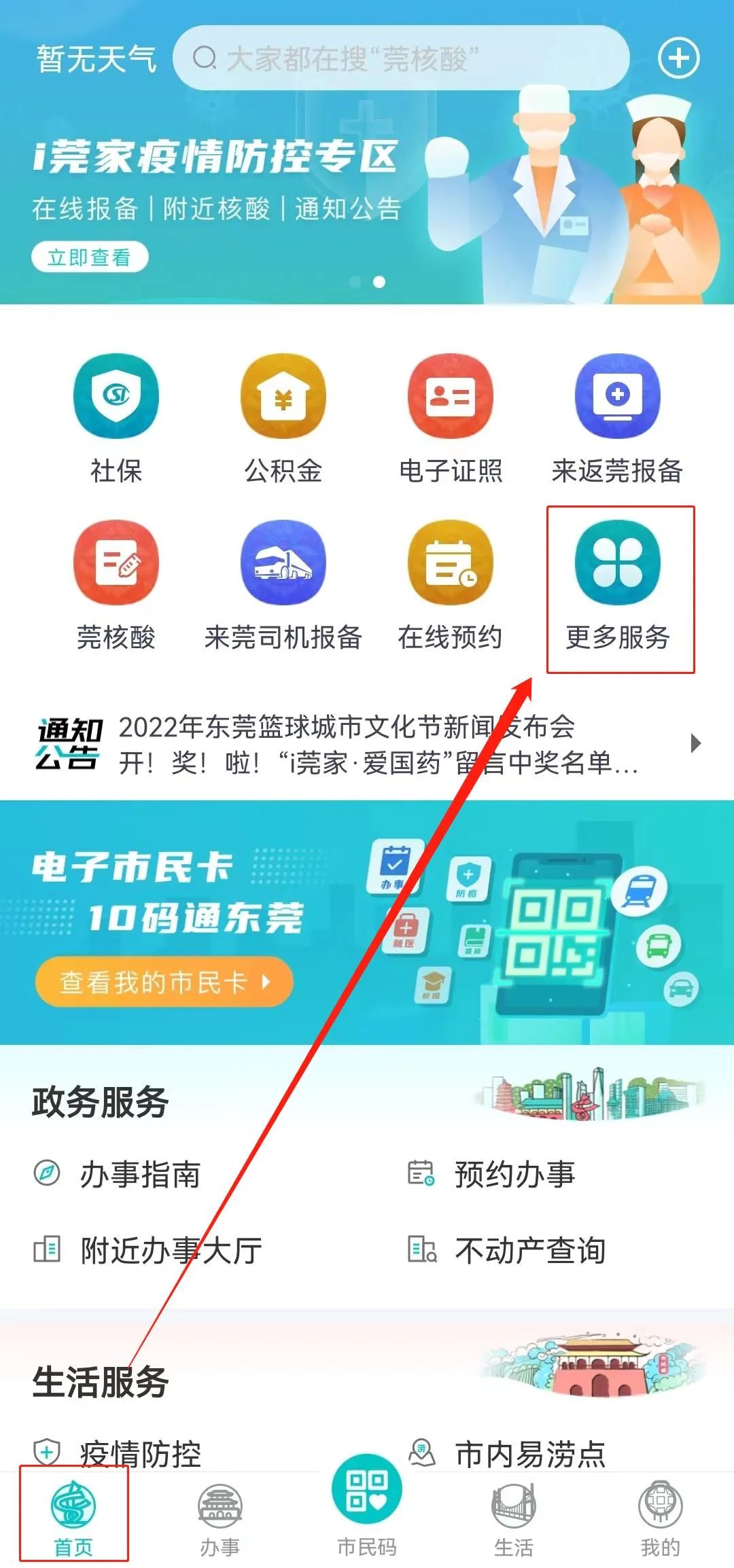 进入APP后,办理途径为:首页——更多服务——直接寻找或搜索对应的事项——填写、上传所需材料——我要办理。