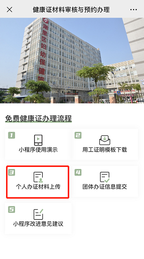 ①拟办证人员手机关注微信公众号“湖里妇幼体检中心”,点击“健康证”。