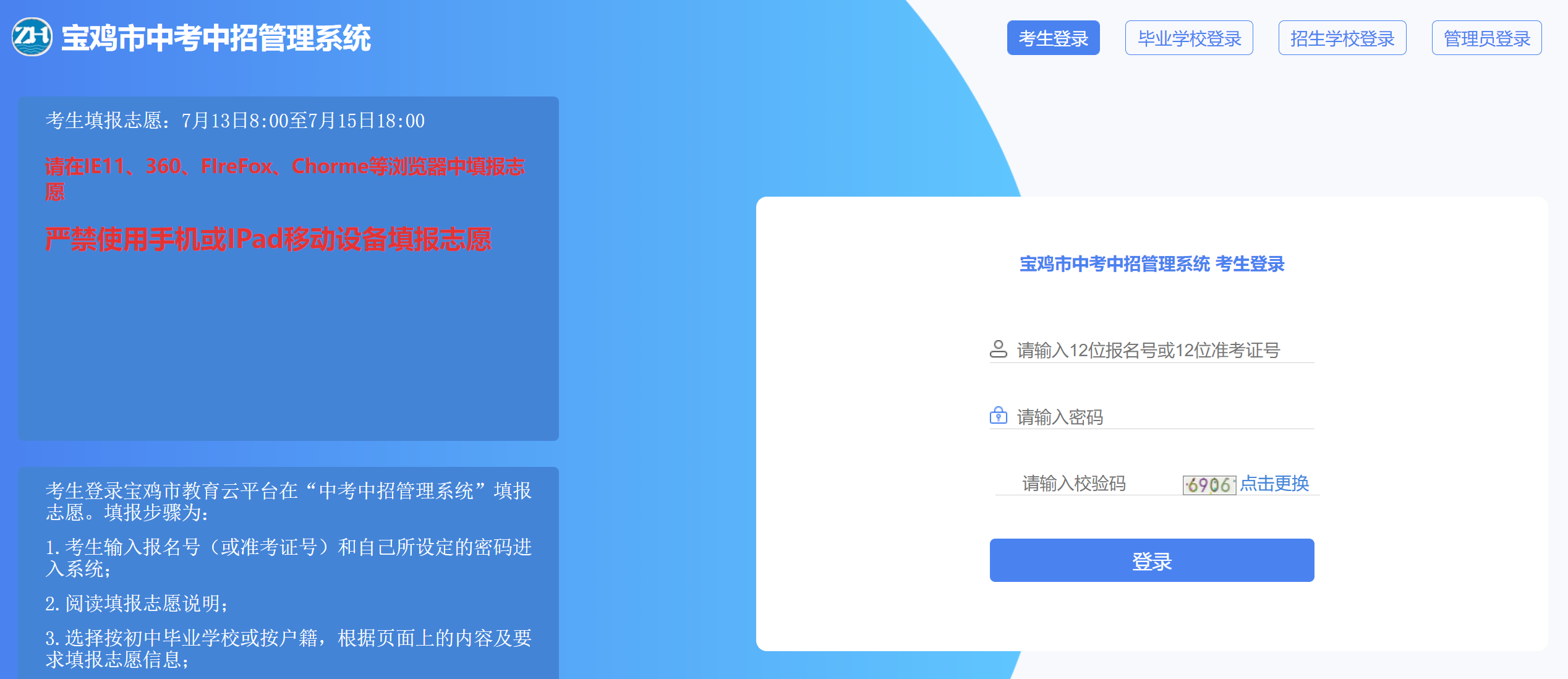 1、进入【宝鸡教育云平台】,点击宝鸡市中考中招管理系统