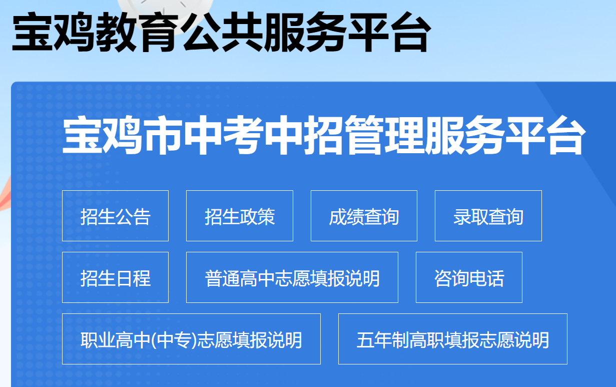 2、点击后进入宝鸡中考中招管理服务平台,待录取结果查询通道开启后即可进入查询。
