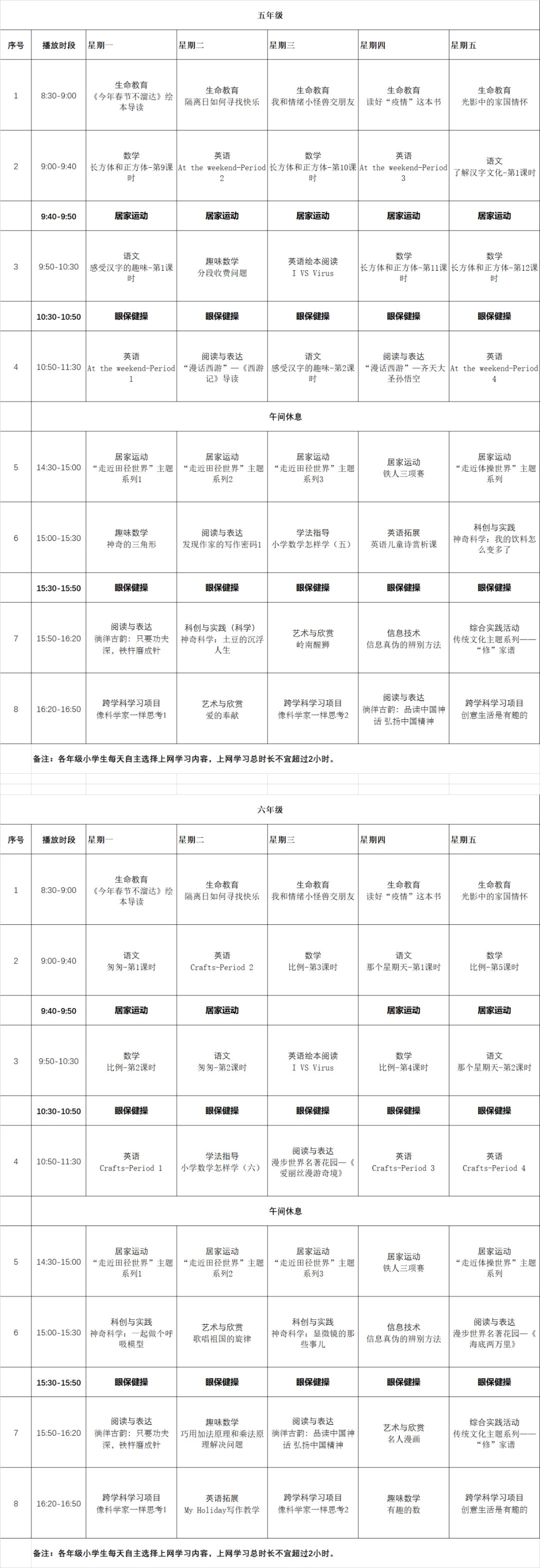 汕头第五周粤课堂小学课程表(汕头教育云课堂)