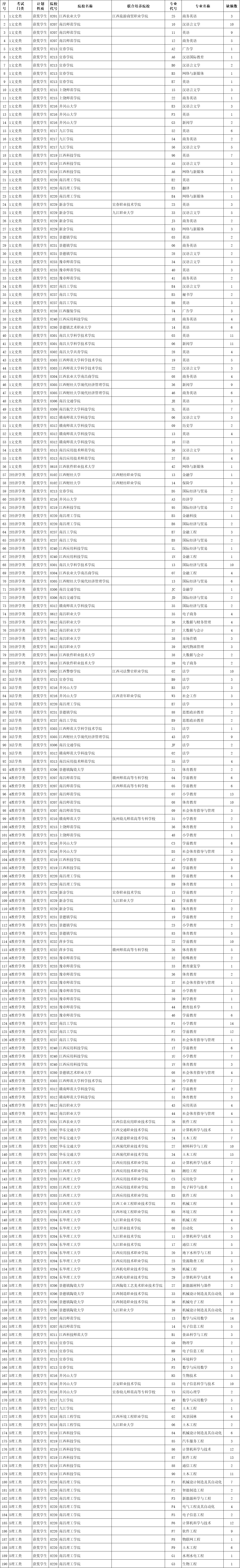 ➤江西省2022年普通高校专升本其他专项计划批次缺额院校及专业统计表: