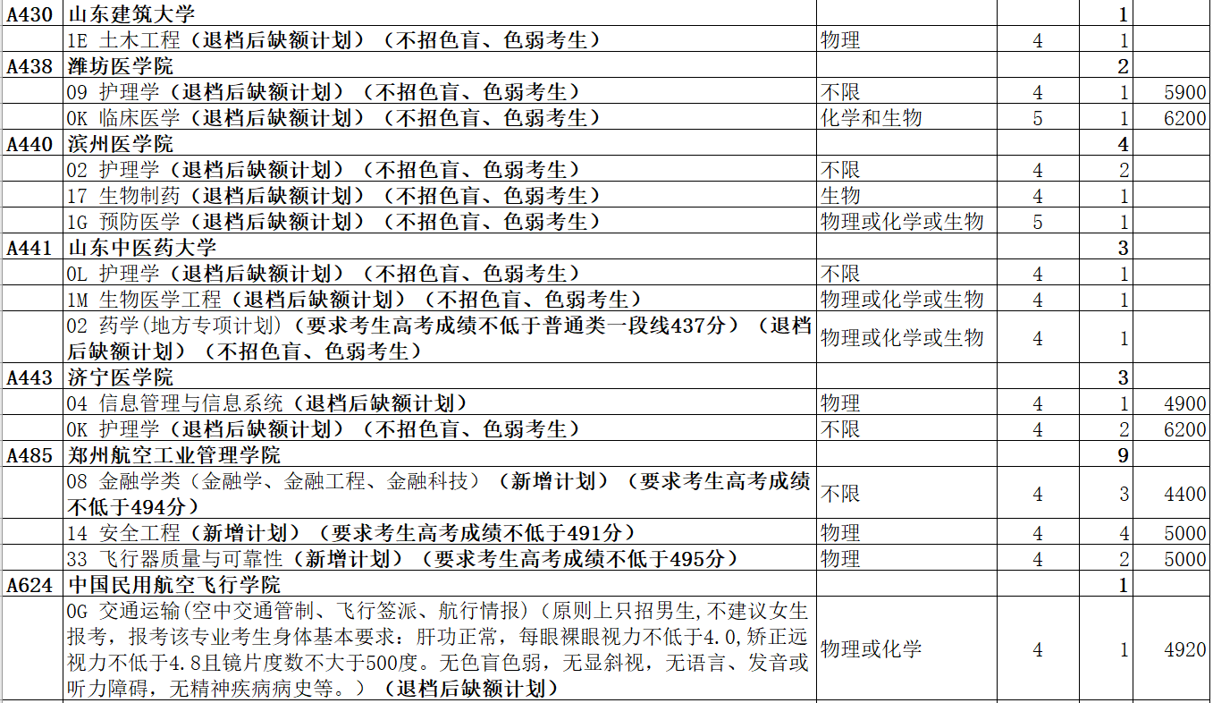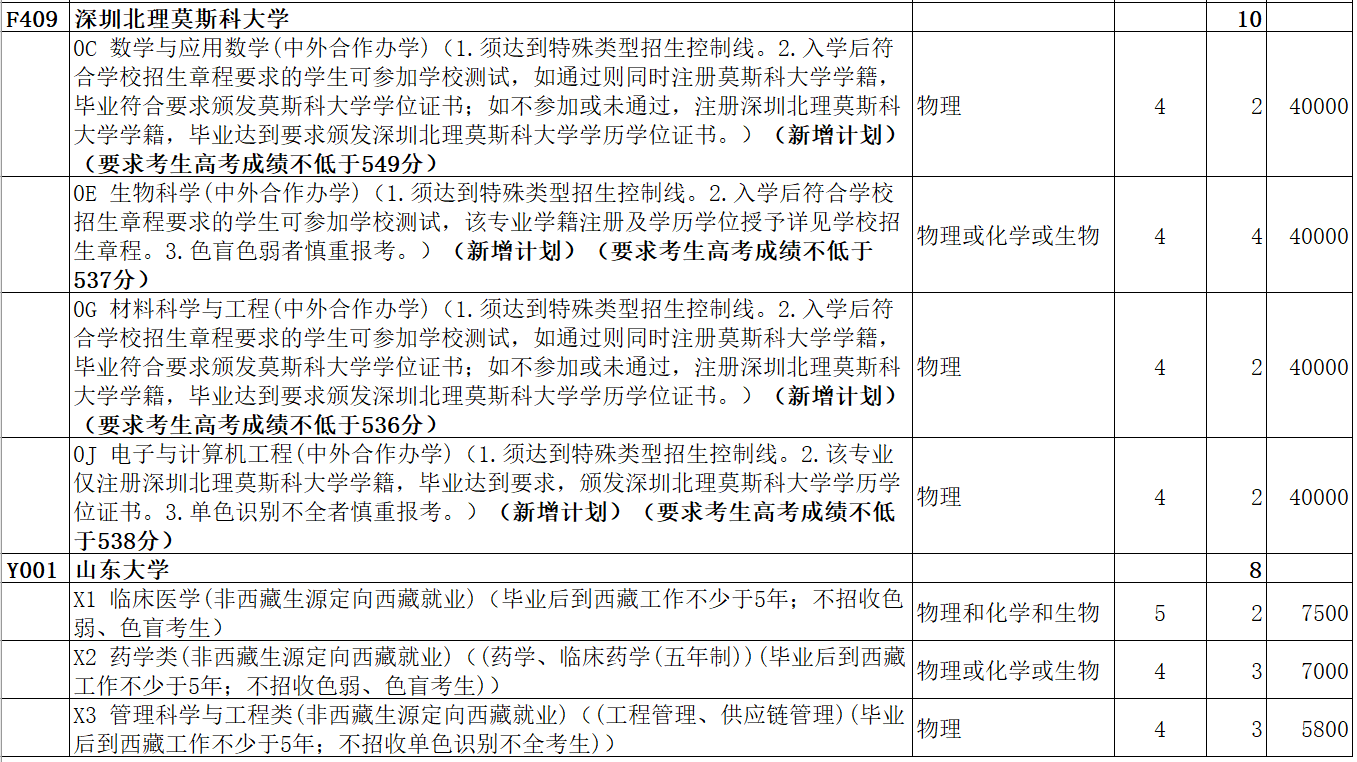 3.本次公布的本科计划主要来源于:高校未完成的计划(生源不足或体检不合格等原因导致退档产生的缺额计划)和高校新增计划。高校新增计划,要求考生高考成绩不低于该专业首次志愿投档最低分。
