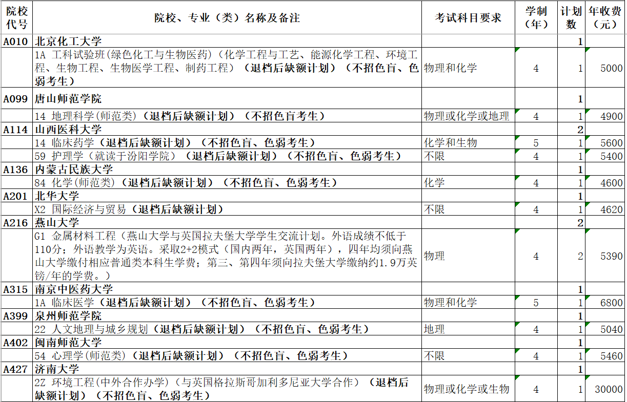 1.部分专业对考生高考体检结论有要求,例如不录取色盲色弱考生,请考生仔细查阅《普通高等学校招生体检工作指导意见》及相关高校招生章程(简章),合理填报。