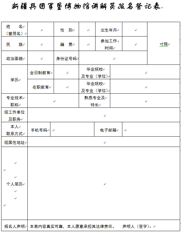 附件:新疆兵团军垦博物馆讲解员报名登记表