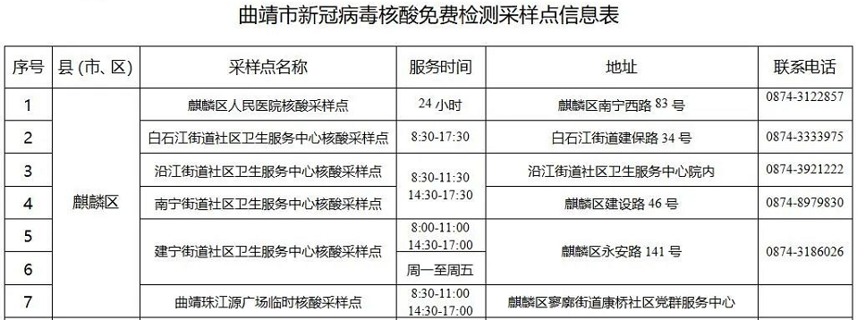 曲靖麒麟区免费核酸检测点有哪些(曲靖市核酸检测)