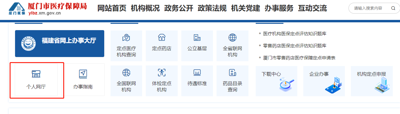 进入厦门市医疗保障局官网,点击“个人网厅”;
