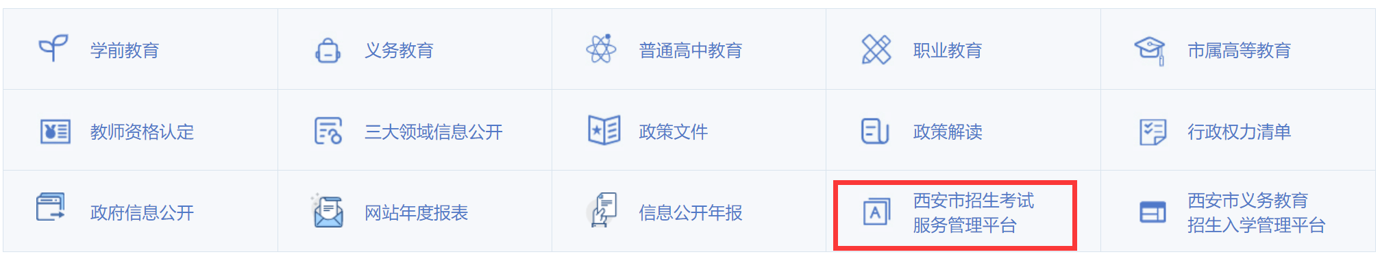 1、进入【西安市教育局】,下滑找到【西安市招生考试服务管理平台】