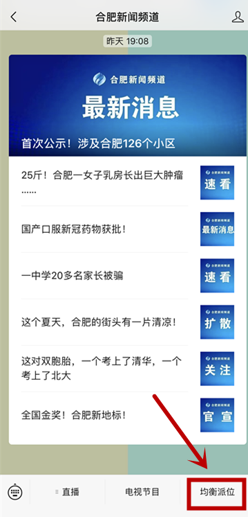 进入相关界面观看直播。或者,手机或电脑端直接打开微信应用软件,搜索合肥市广播电视台合肥新闻频道、生活频道 、教育法制频道微信公众号,点击菜单栏“均衡派位”,即可收看。