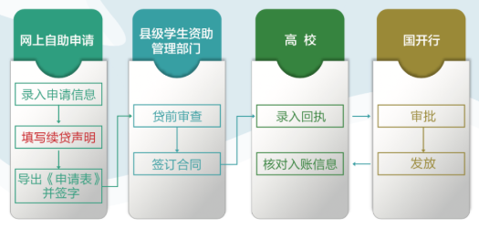 1、在前往县级学生资助管理部门办理续贷手续前,请先登录学生在线系统更新个人及共同借款人相关信息,再提出续贷申请。按照系统提示填写续贷声明后,打印《申请表》并签字。