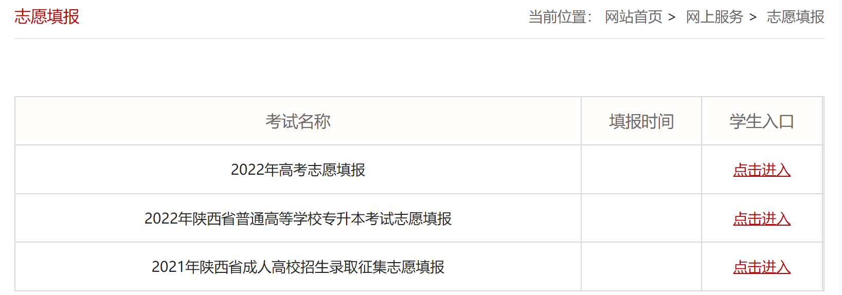 志愿填报平台:陕西省教育考试院