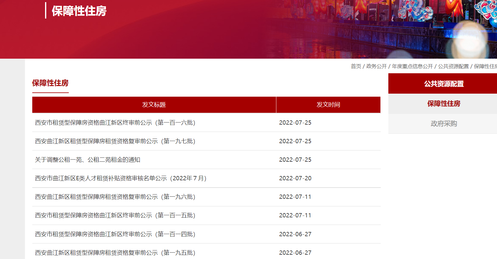 公示名单:西安市租赁型保障房资格曲江新区终审前公示名单(第一百一六批)