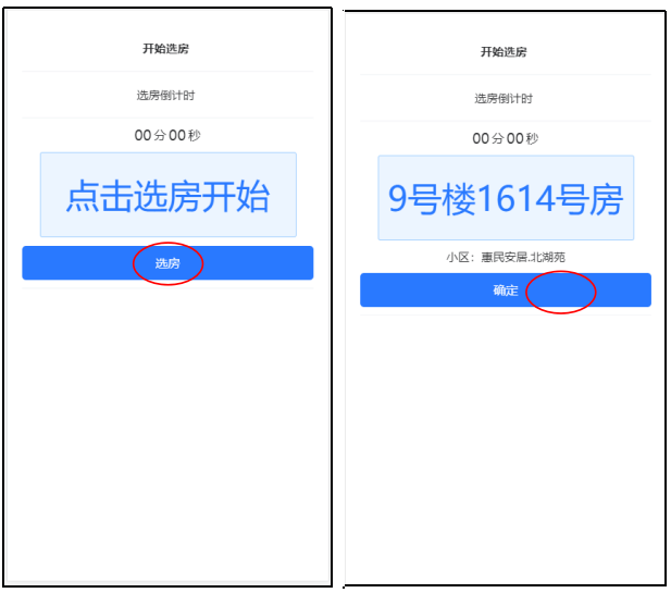 5.点击“选房”开始选房,点击“确定”选中房号。