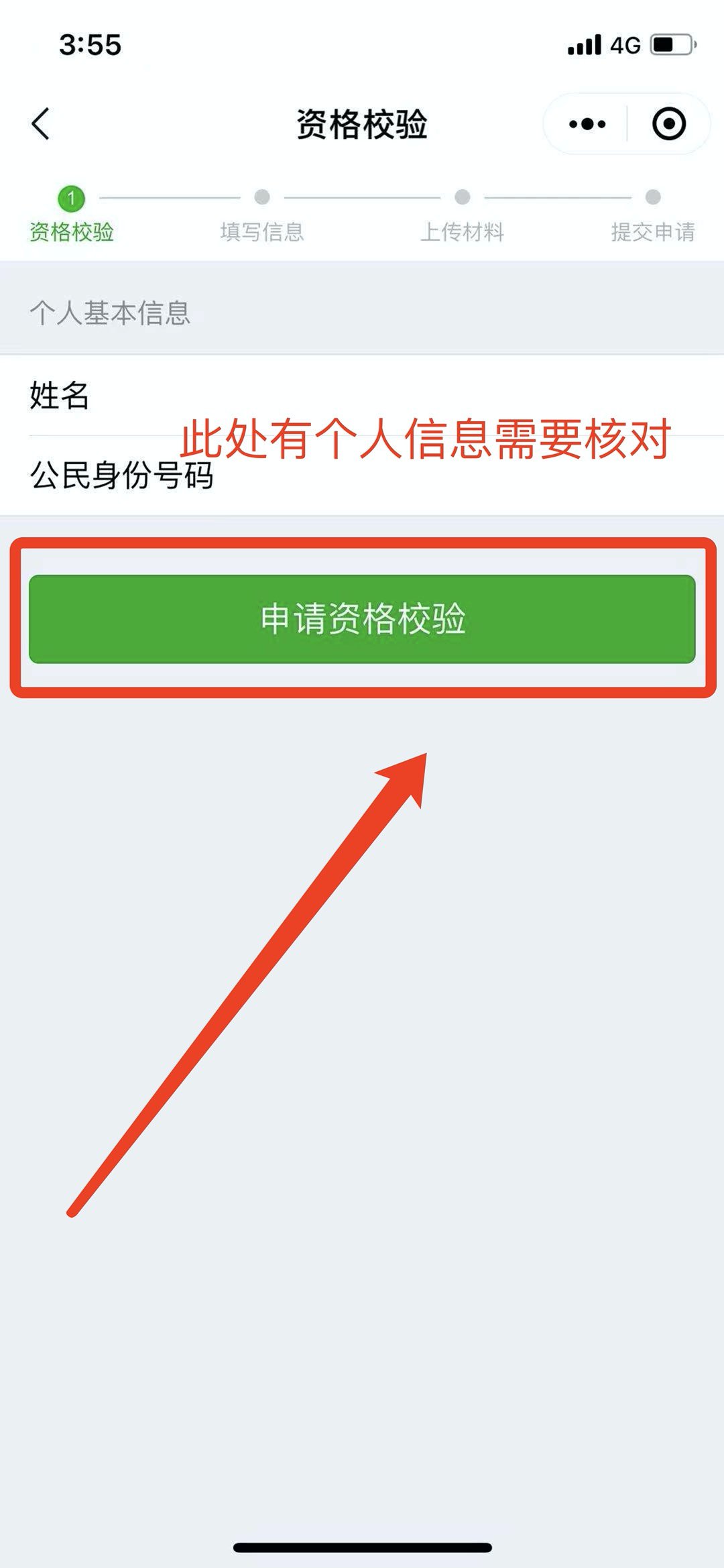第四步:查看个人信息点击“申请资格校验”,校验成功后根据操作步骤进行即可。