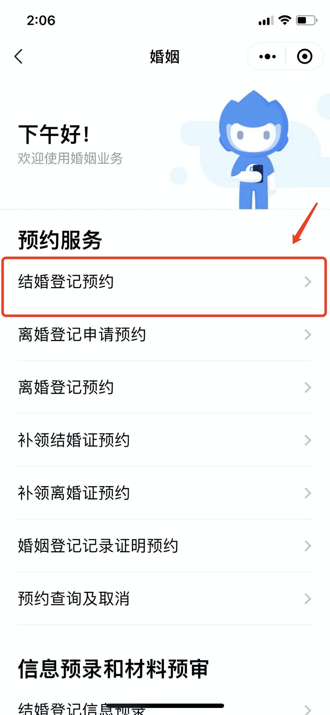 2.选择所需办理的业务点击进入,并填写双方个人信息,选择时间段即可。